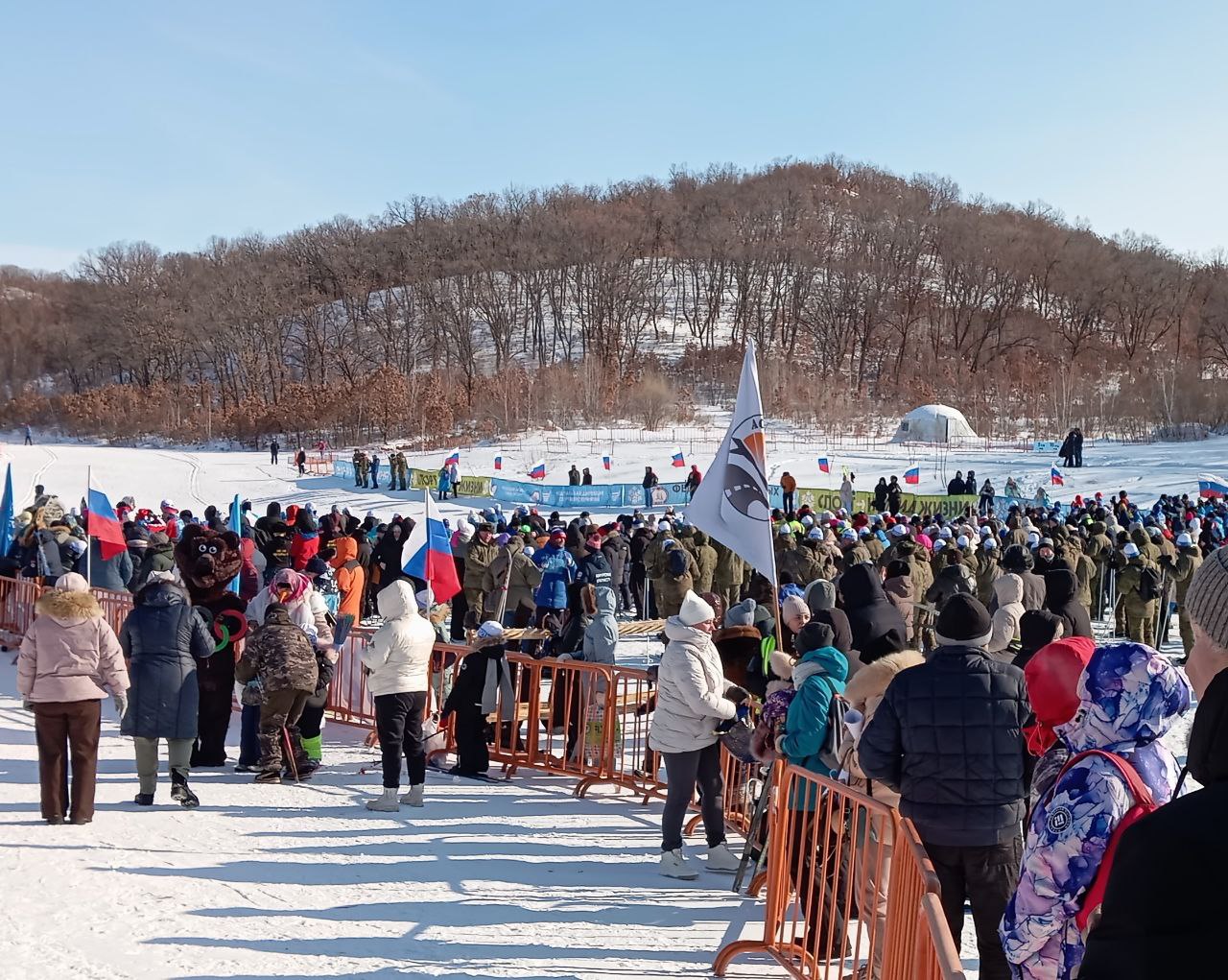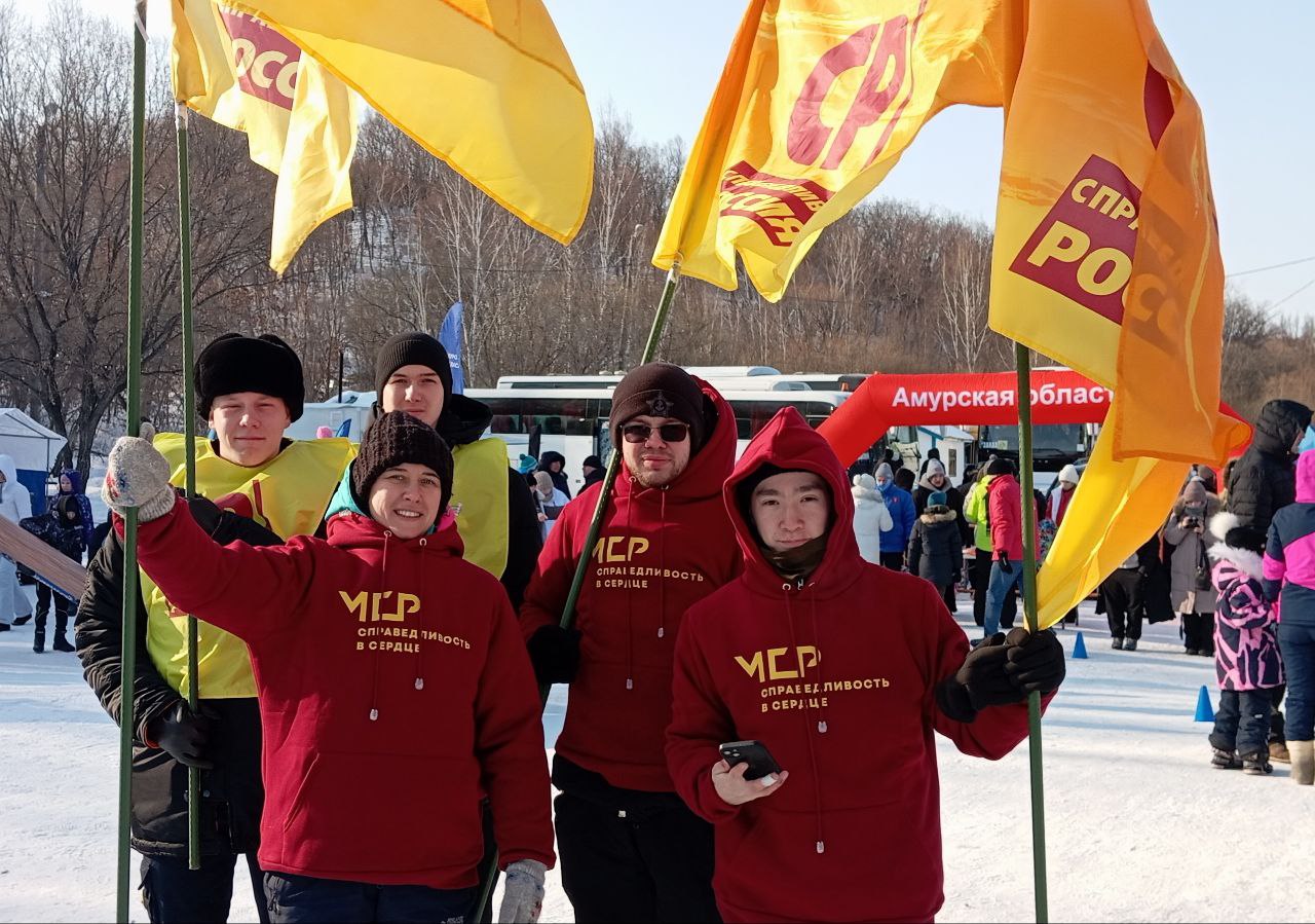 Лыжники с символикой СР – на позитиве и в боевом настроении преодолели дистанцию массового забега в числе тысяч амурчан, любителей спорта и настоящей русской зимы.