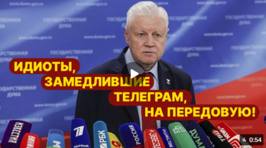 Лидер "СПРАВЕДЛИВОЙ РОССИИ" Сергей Миронов назвал "мерзавцами" и "идиотами" тех, кто принял решение замедлить работу Telegram. По словам депутата, эти люди должны отправиться в зону спецоперации.