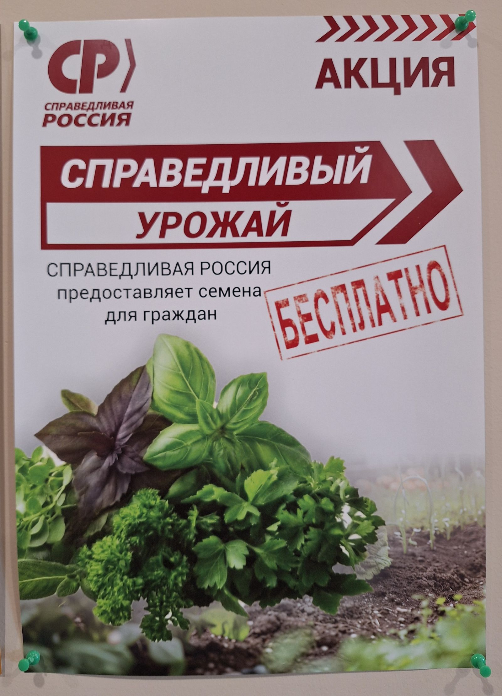 Что нужно сделать? Приехать в офис Регионального отделения СПРАВЕДЛИВОЙ РОССИИ, предварительно позвонив по телефону 8-914-578-71-86. Каждому обратившемуся дарим по пакету семян разных культур (можно взять только 1-2 вида зелени, а можно запросить и весь ассортимент).